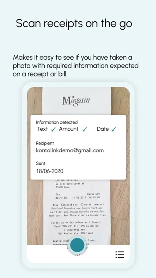 Every image captured with Kontosnap meets the highest quality standards, adhering to digital bookkeeping laws. Scan, and your receipt is instantly transferred to your Kontolink account. You’re done, and the receipt can go into the bin!