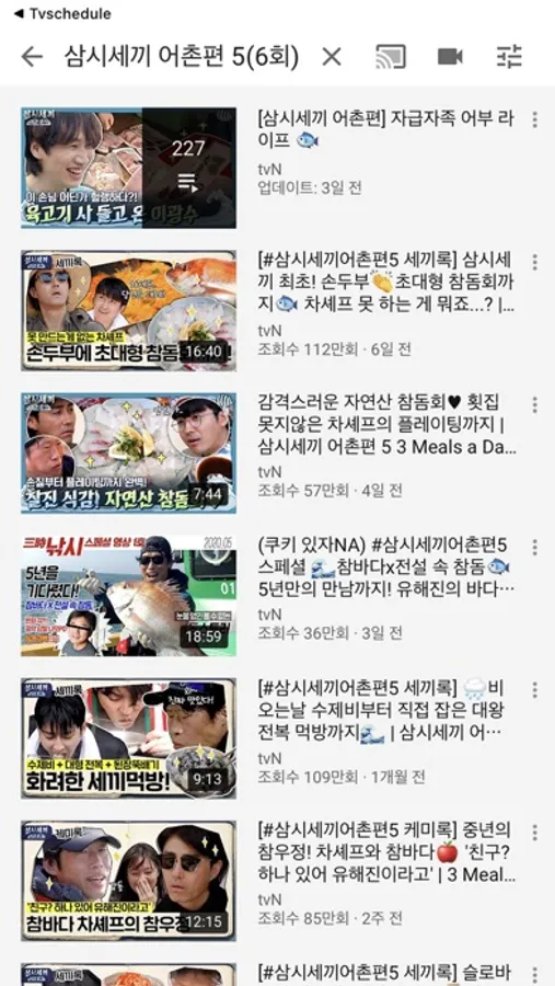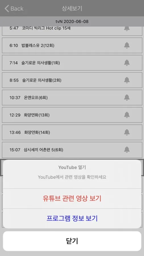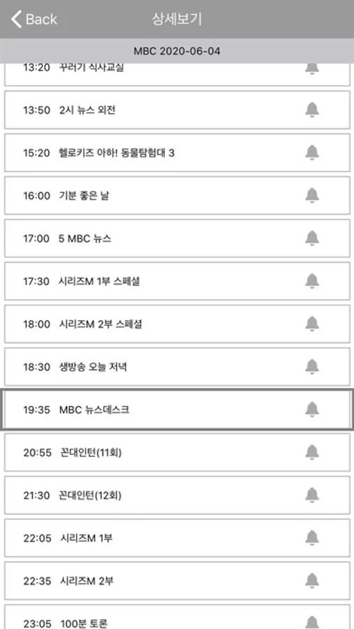 - 해당 채널 클릭으로 하루 편성표 확인
