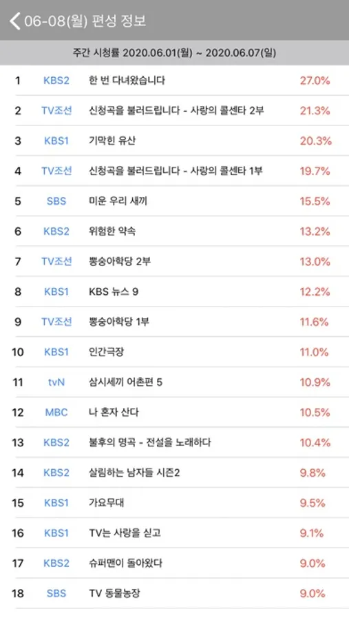 - 주간 시청률 순위 보기