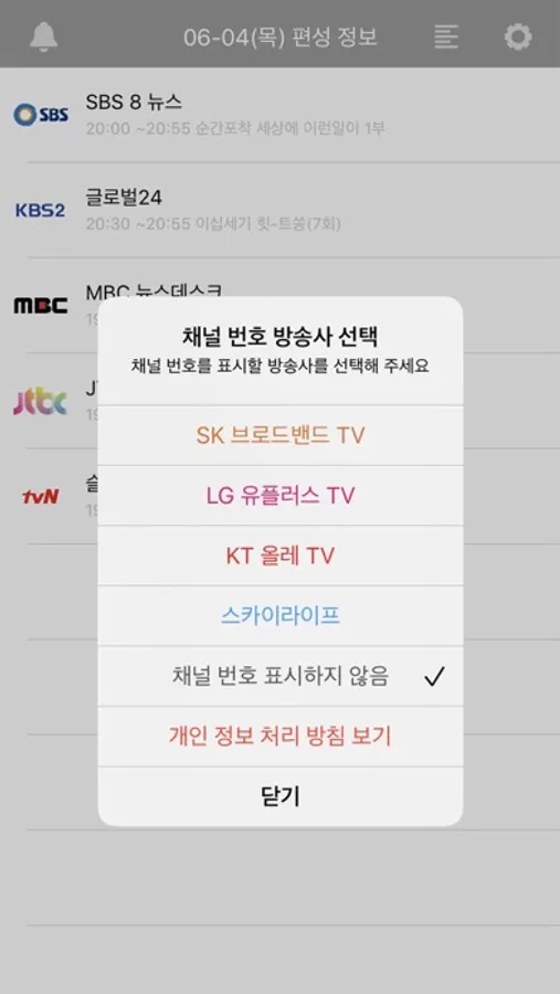 - 채널 번호 확인 기능