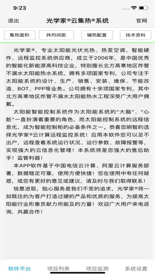 太阳能智能控制系统作为太阳能系统的“大脑”、“心脏”一直扮演着重要的角色,而太阳能控制系统的远程信息化,成为智能控制柜的必备条件之一。恭喜您明智的选择光学家®云计算远程监控系统!应用本软件您可以足不出户,远程查看系统运行状况、运行参数、故障报警等,实现强大的云信息化管理!本系统将是您强大的售后助手!监管利器!
