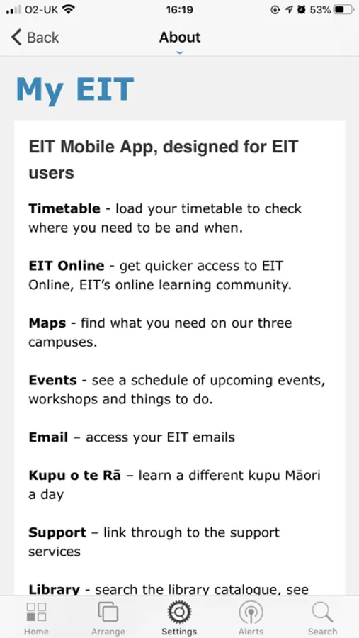 My EIT provides personalised information for EIT user at the Eastern Insititute of Technology. Timetable, EITOnline, Student Services, Maps, News, Events and Campus specific information
