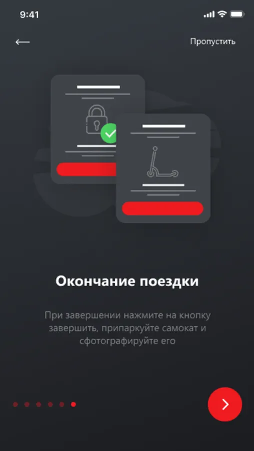 - Для завершения поездки вам достаточно припарковать самокат и сфотографировать его.