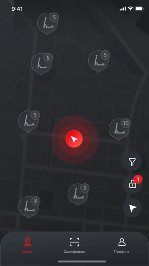- Для начала аренды выберите на главном экране нужный вам электросамокат и забронируйте его. У вас будет несколько минут для того, чтобы вы добрались до него или вы можете сразу сканировать qr-код и начать поездку.