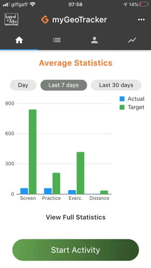 MyGeoTracker gives you the ability to record and track your activity and record your screentime and practice time as an individual and as a family. You can create family profiles to show how you are improving your exercise and activity balance.