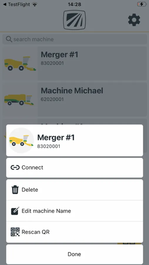 Your machine connection settings will then be saved in the app and available in your machine selection list.