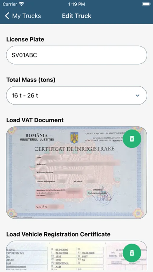 Do you own several cars and like to drive them all or do you own a company and your employees change them periodically? Add all license plates in the app for both the trucks and tows, and select the ones for which you want to generate an authorization.