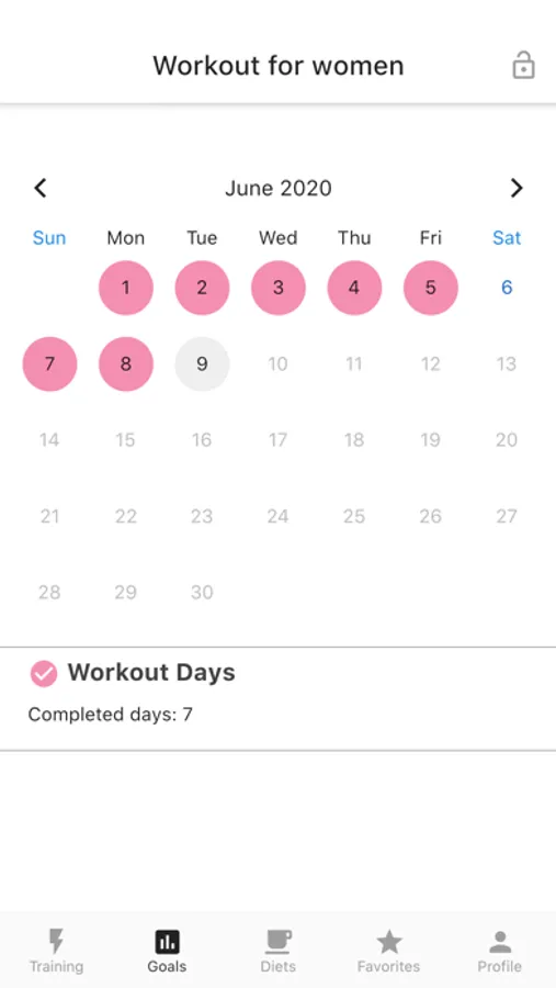 Also contains an habit tracker to track all the days you do your workout and accomplish with your body goals.