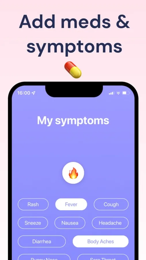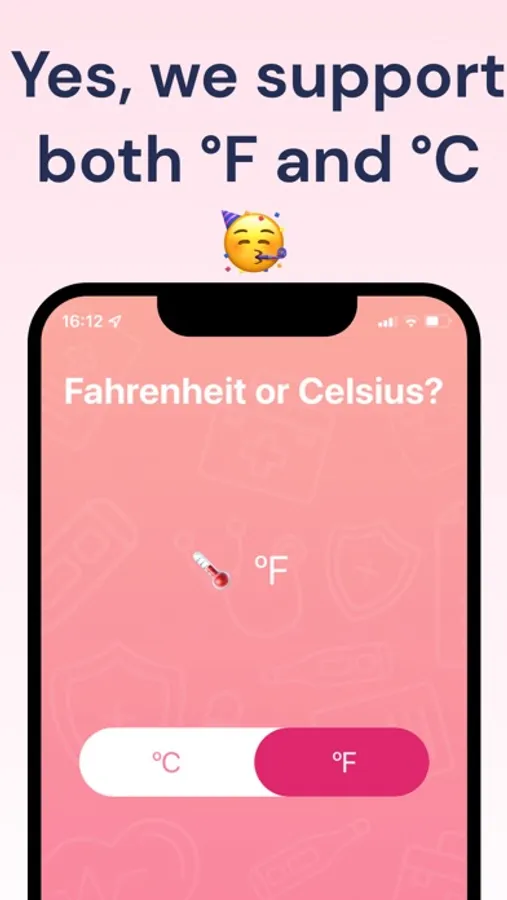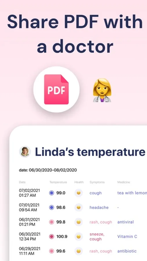 Check your temperature with your thermometer and and see detailed stats of the days you have a fever;