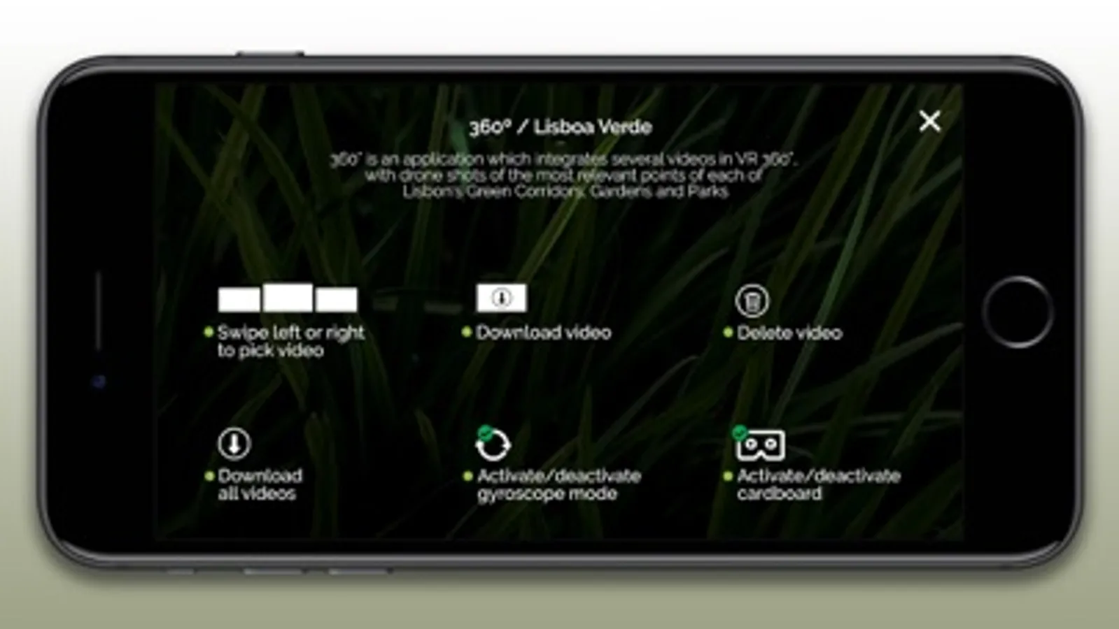 Lisboa Verde is an application that integrates several videos in VR 360º of the Green Corridors that connect important areas of the city and Lisbon Gardens with gyroscopic images that allow you to rotate in various directions and view the most interesting shots from all angles.