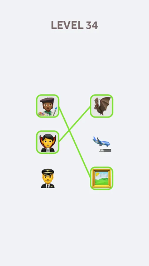 A new imagination game in which you need to connect pairs of emotions by associations. Think and find the idea of each puzzle. Just tap one by one on the elements from different columns to connect them with a line. Or drag to draw a line and connect elements from different columns. If you correctly connect all the elements, you pass the level. Harder than you think!
