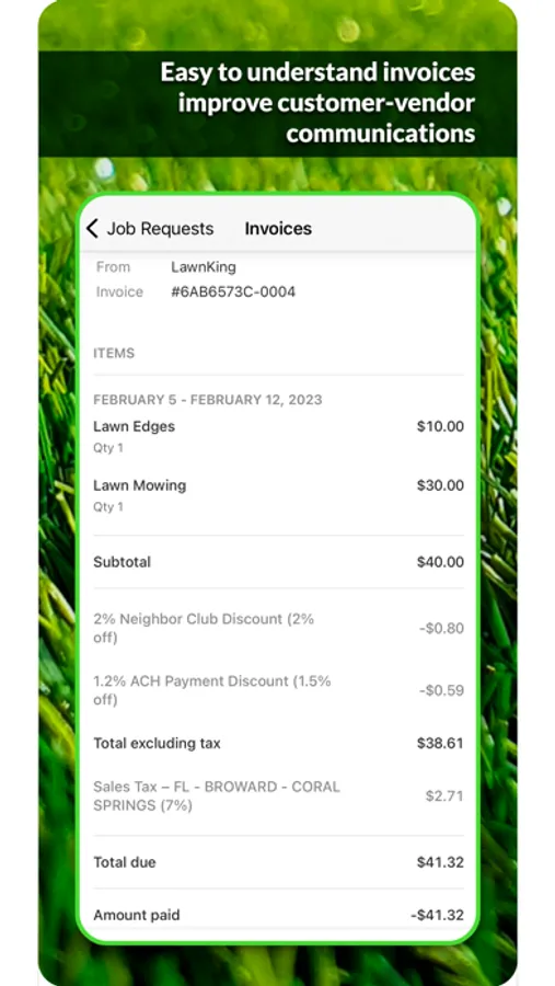 - Pay securely with invoicing and payment processing handled by Lawn-King.
