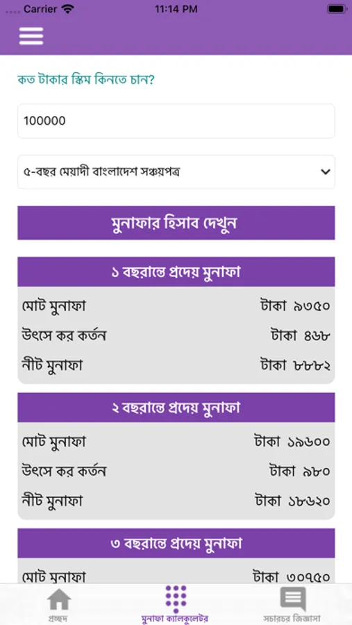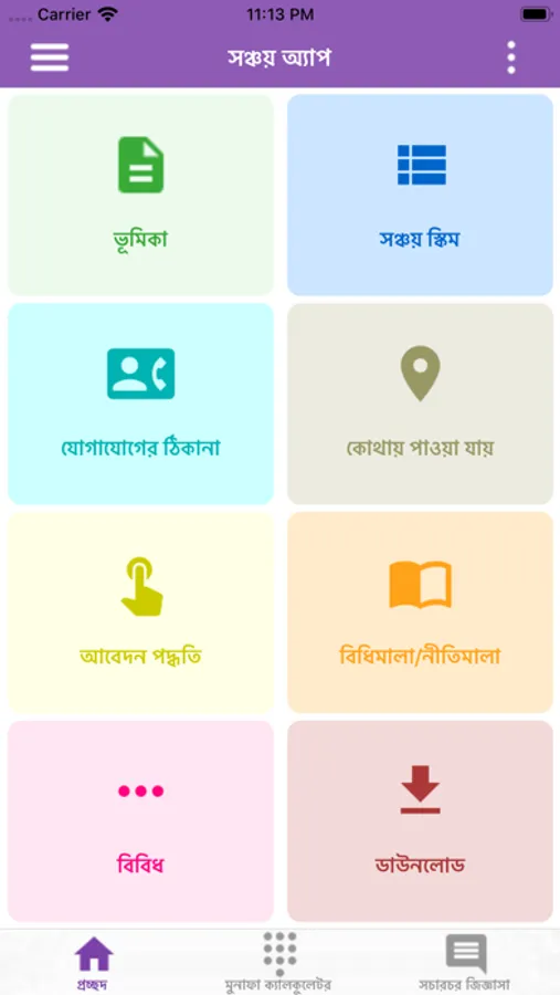 Sanchay App is the official app for general public information about savings scheme of Department of National Savings. The Bengali word "Sanchay" means saving. There are more than ten sanchay schemes operated by Sanchay Odhidoptor. This app describes about all these Sanchay schemes there interest rates and the procedure to invest your money by maintaining these sanchay scheme.