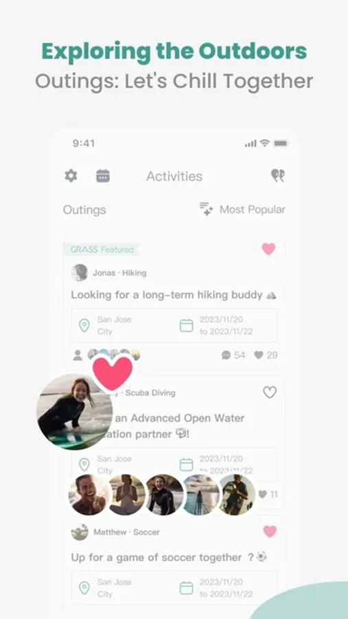 Don't just swipe left and right on profiles every day, in GRASS you can initiate dates or group activities at any time, explore nearby people who want to play together and match, the time every new friend can meet is clear at a glance! We play and eat together in this dating app! Dating is not awkward, success rate has greatly increased!