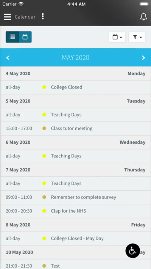 • College calendar – so you know what's happening, when you have a holiday and any key dates during your time at College.