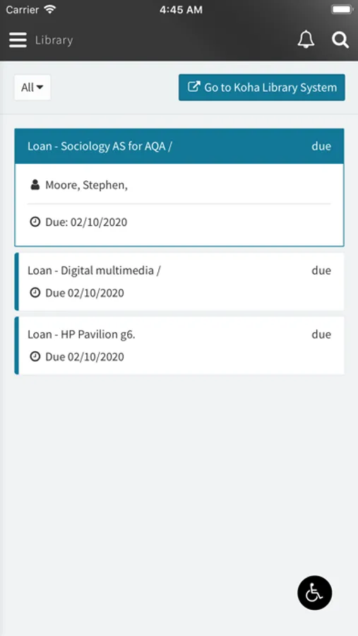 • Library services – keep up-to- date with your borrowing history and reservations, as well as receive notifications when a reserved book is available, or overdue notices.