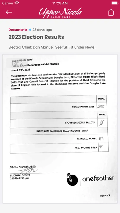 - View personalized feed supplied by the Band Office in a chronological order or by category: