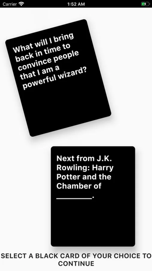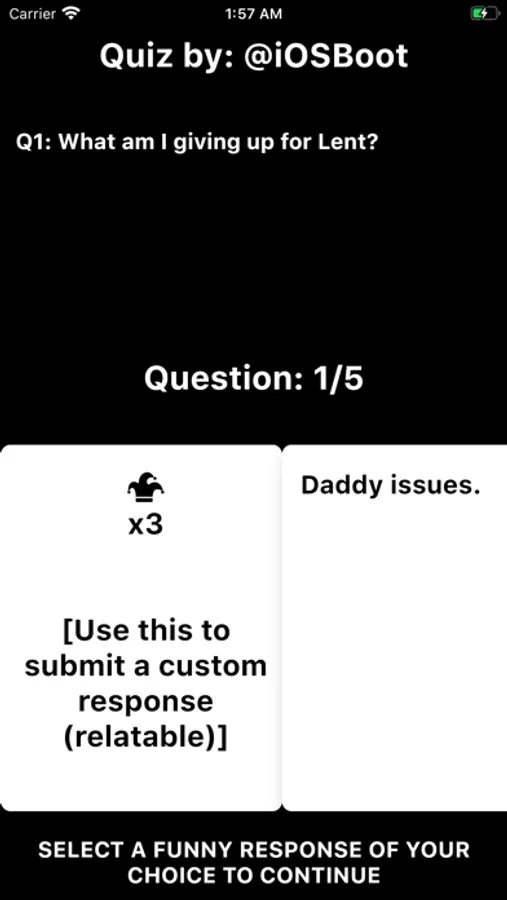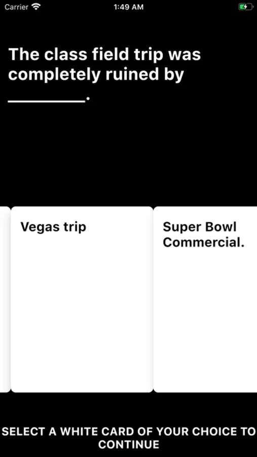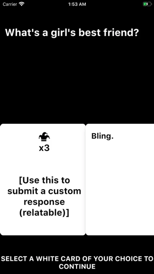 - A Question Card will be shown to everyone, e.g. "I got 99 problems but __________ ain't one."