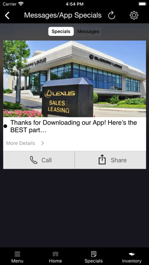 In addition, all the standard MLink App features are also here like: Call and email each department, get directions, view operating hours, get quotes on vehicles, order parts, etc etc…