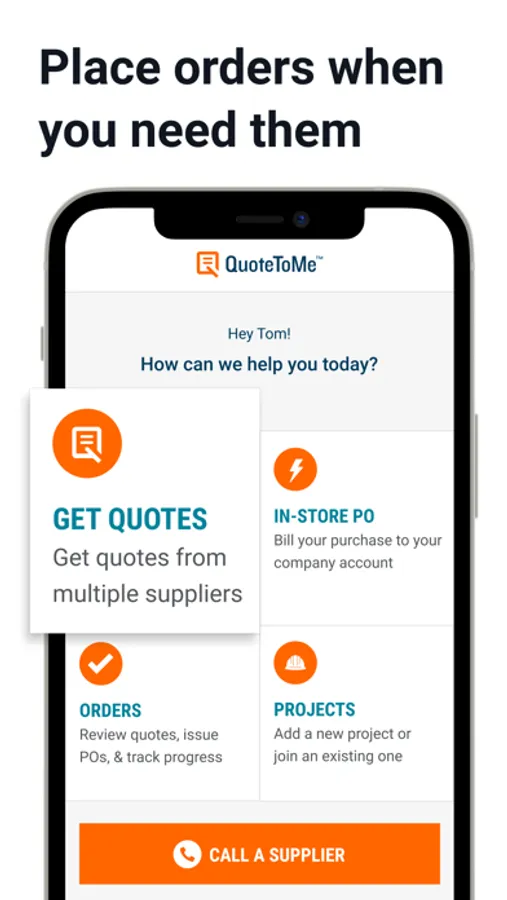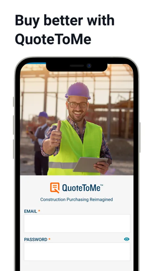 Building is best done out on the jobsite - so shouldn’t your purchasing solution be out there with you? With QuoteToMe Mobile it can. Access the power of QuoteToMe on your mobile device and order materials and equipment, issue a purchase order on the go, and pay for materials at the counter of your favorite hardware store.