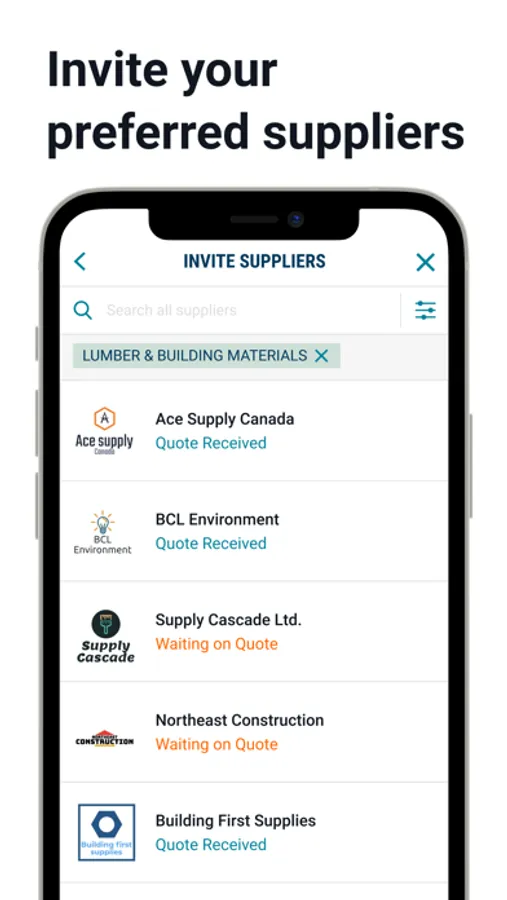 • Review quotes and select winning suppliers in the mobile bid grid