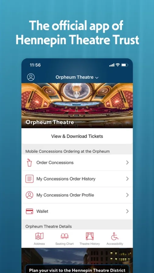 Hennepin Theatre Trust and Broadway Across America are proud to announce a new mobile app! With the aid of the app, fans may now connect their Ticketmaster and/or their Broadway on Hennepin subscriber account to access their mobile tickets for entry into shows at the Orpheum, State, and Pantages Theatres. In addition to providing access to your tickets in one place, the app provides links and information to help make your visit to the theatre easier and more enjoyable.