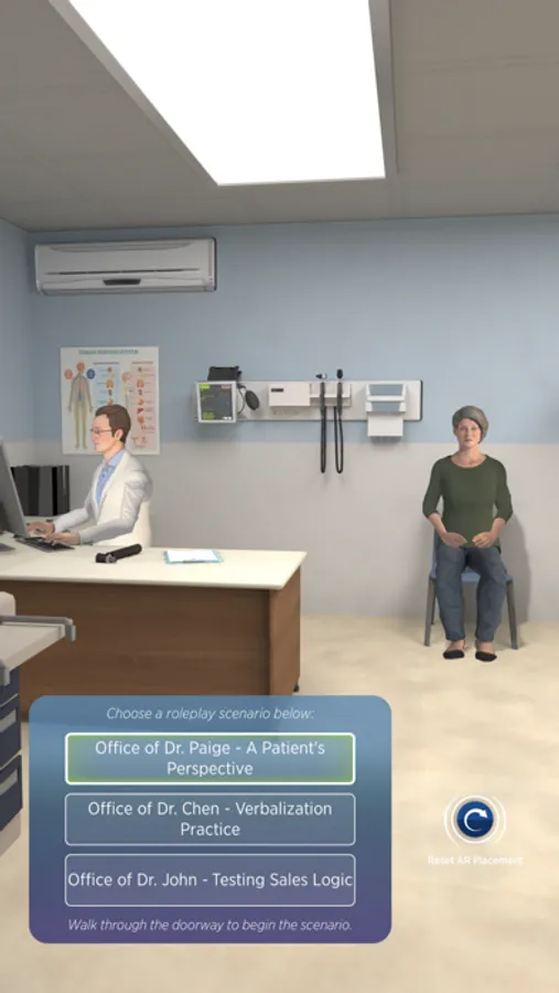 Step inside Tipping Point Media’s Augmented Reality Sales Simulator and experience sales training in a new, virtual world. The AR Sales Simulator transforms your living or office space into a 360-degree, life-sized virtual doctor’s office that you can physically walk into by scanning your floor and placing an AR doorframe.