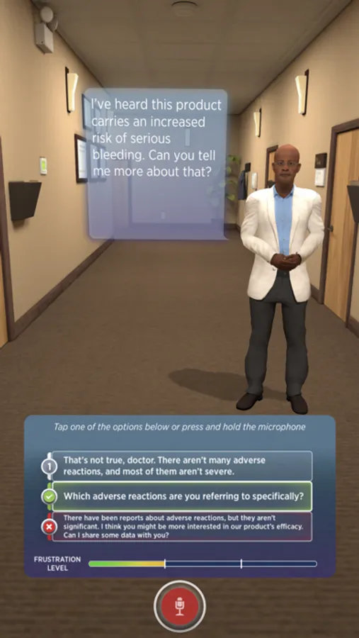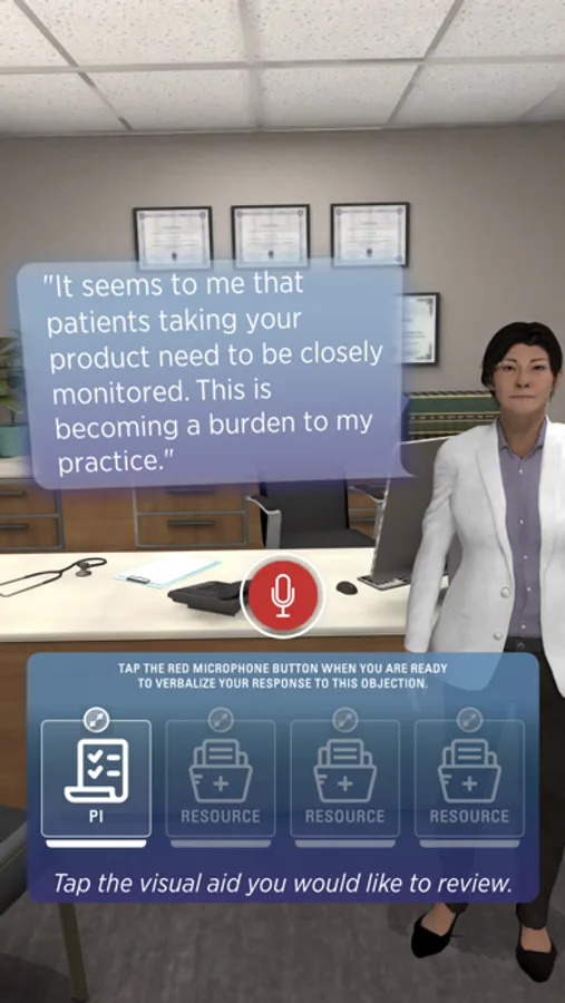 - Challenge yourself in a simulated sales conversation with a doctor using branching logic.