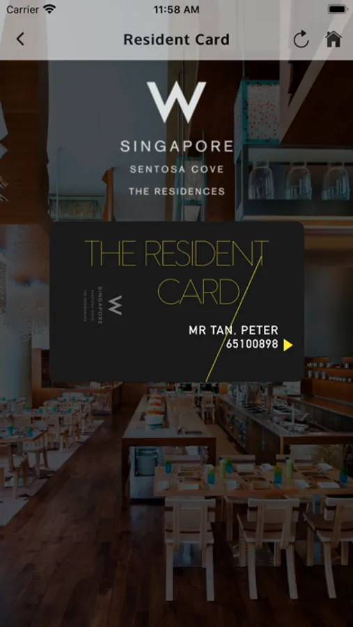The app for the W Residences in Singapore. This is exclusively for the residents of the W Residences. With this app you will be able to identify yourself in the hotel outlets to receive exclusive benefits and you will be able to make reservations.