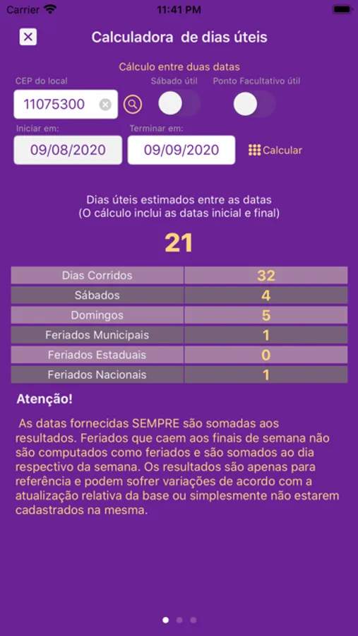 Calcule os dias úteis levando em conta os feriados MUNICIPAIS a partir de um CEP.