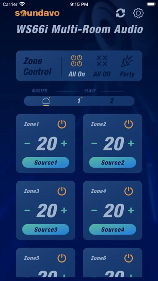 - Adjust the each zone's on/off, volume and the source selection on the main UI page.