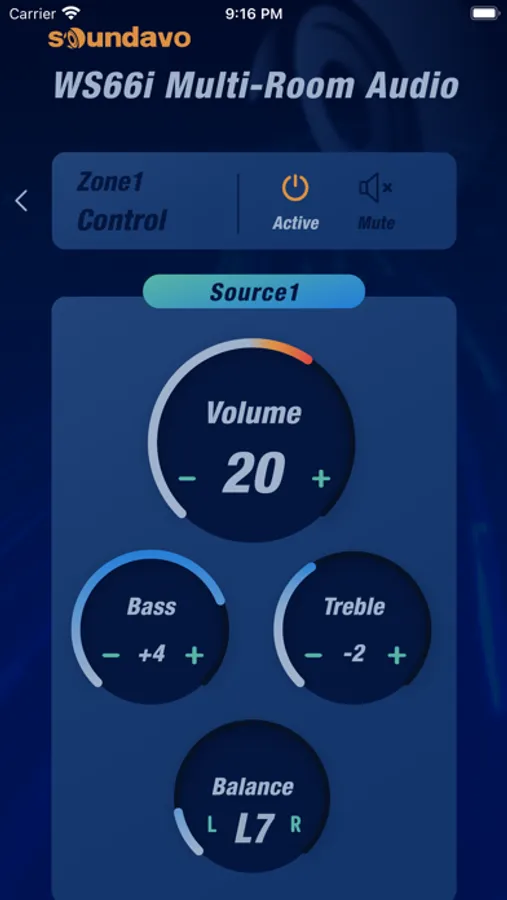- Control each zone’s Volume, Bass, Treble, and Balance
