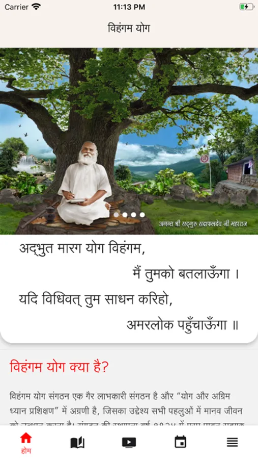 The organization was established in the year 1924 by His Holiness Sadguru Sadafaldeo Ji Maharaj who discovered this wonderful meditation technique after 17 year of strenuous meditation practice. Just before discarding His mortal frame in the year 1954 through a yogic technique, He authorized Sadguru Shri Dharmachandra Deo Ji Maharaj as the next Sadguru who continued for 15 years till His Samadhi, in year 1969. Today, under the holy guidance of present Sadguru His Holiness Shri Swatantradeo Ji Maharaj, Vihangam Yoga has reached around 35 nations with hundreds of Ashrams and has transformed the lives of more than 5 million disciples belonging to different races, religions, castes and classes.