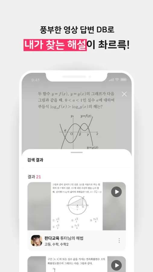 궁금한 수학문제를 찍고, 검색하면 명문대 튜터의 문제풀이를 무.료.로 확인할 수 있어요.