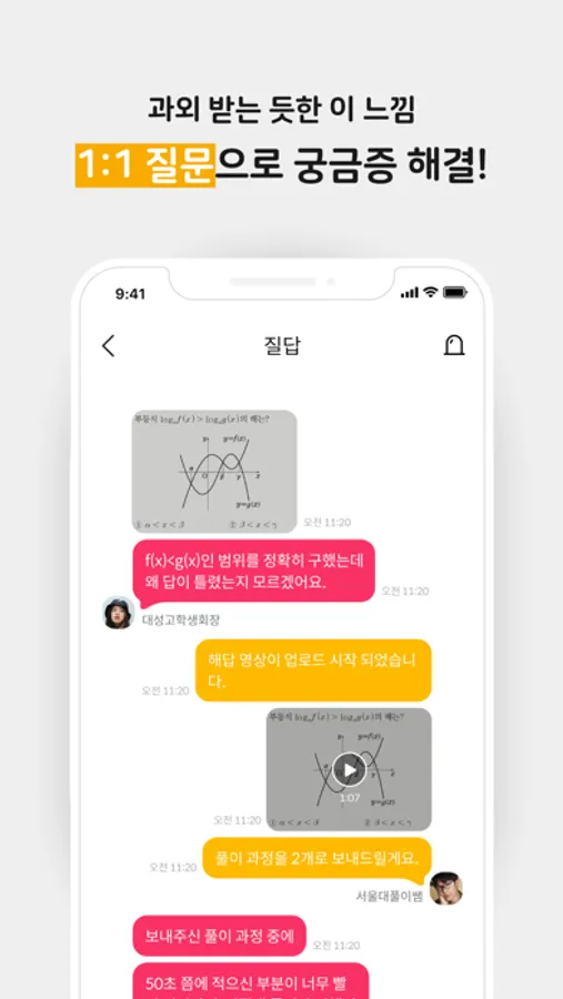 - 궁금한 문제 찍고 기다리면 나만을 위한 풀이 영상이 실시간으로 도착!