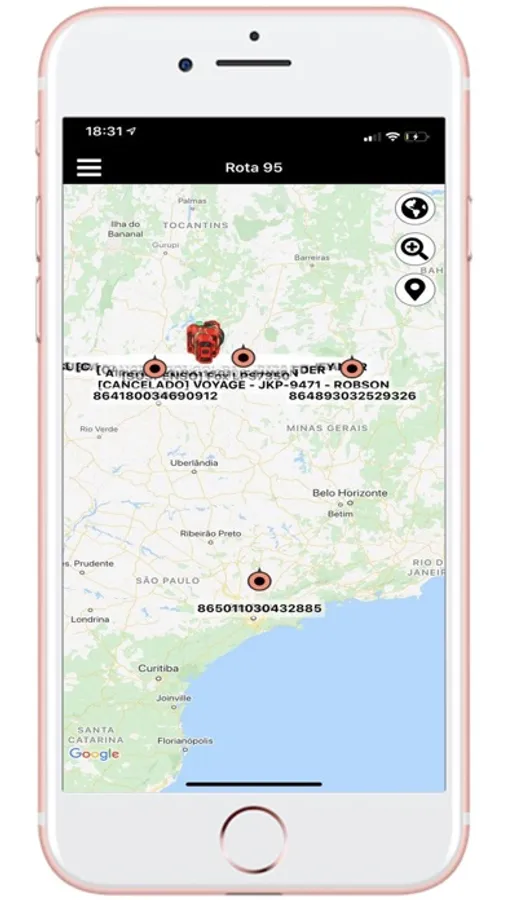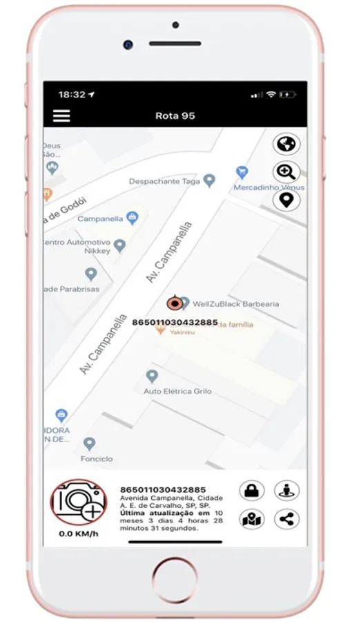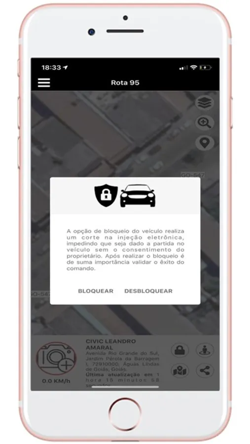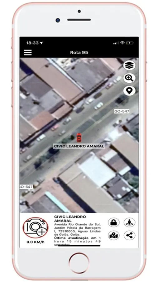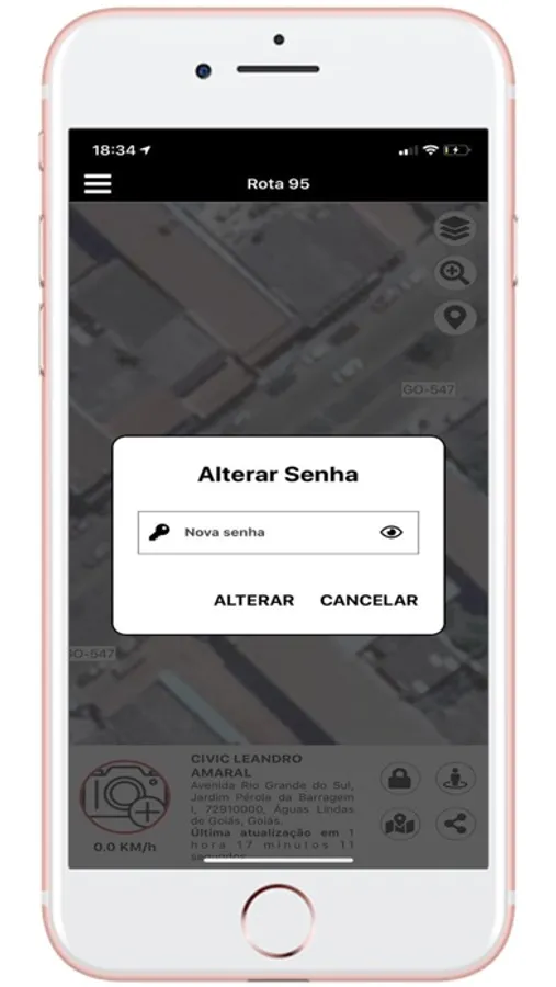 - Visualização do veículo em modo mapa e satélite;