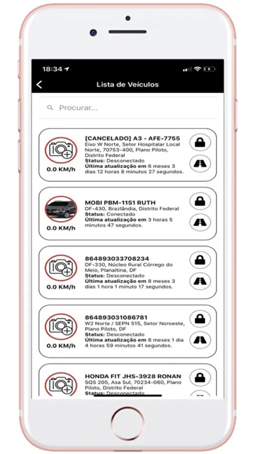 - Lista dos veículos;