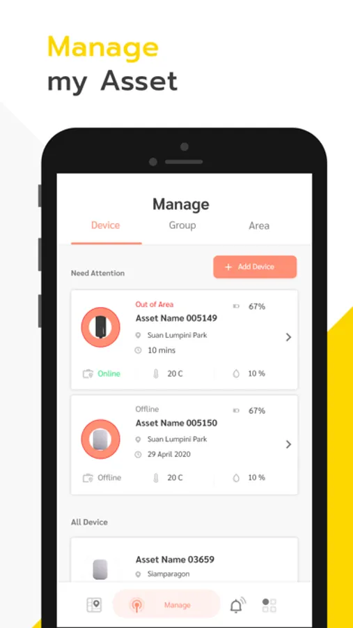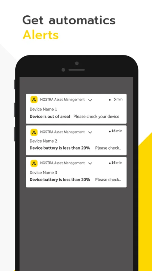 Get an automatic alert when the device in charge has abnormalities such as low battery level or assets move outside the geofencing area.
