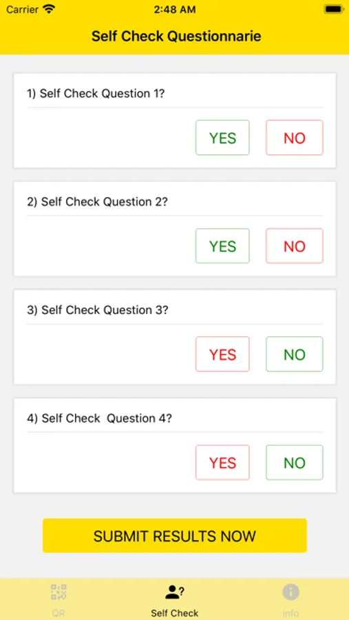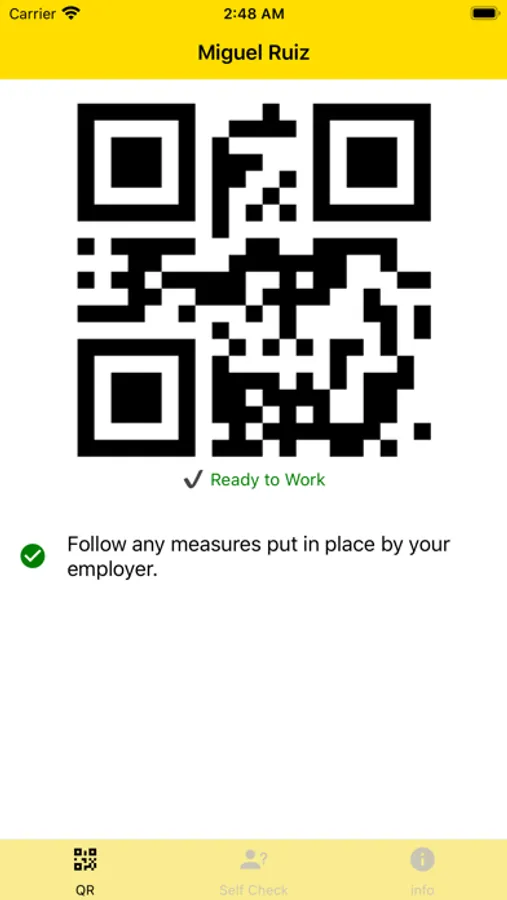 The App has the ability to store relevant safety questions and once these are answered and the answers show everything is OK it then notifies you are safe to return to work and a QR code is then made available on your screen.