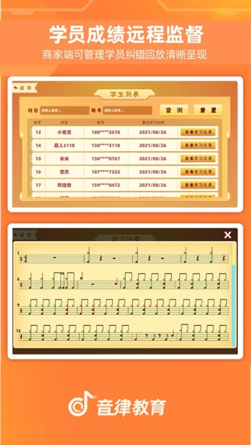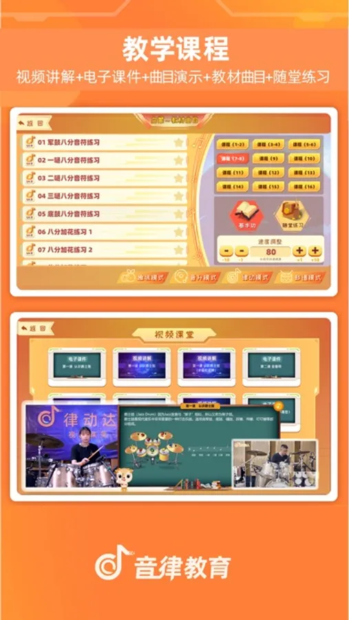 《律动达人》是一款趣味性和专业性相结合的架子鼓教学和陪练软件,具有专业的课程体系(启蒙、初级、中级、高级)、国内外考级陪练、曲库中心实时更新(几千首不同风格,不同难度)闯关模式、对战模式、基本功(针对时值、提速、力度的专项基本功练习)、课堂作业、智能纠错等众多实用功能,帮助机构解决招生、教学,管理,运营等。利用智能化教学系统提升招生转化率,帮助机构提高教学成果,以及培养学生的兴趣自主练习。