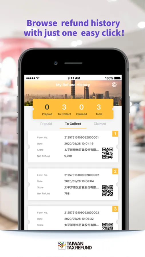 TAIWAN TAX REFUND can let you have realtime info of tax refund stores by your location, personal refund history at a glance and make reservation to claim your refund ahead before departure. Plus the super convenient refund calculator, you will enjoy the most fun of shopping in Taiwan.