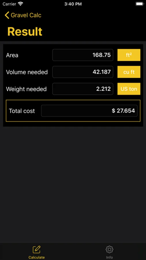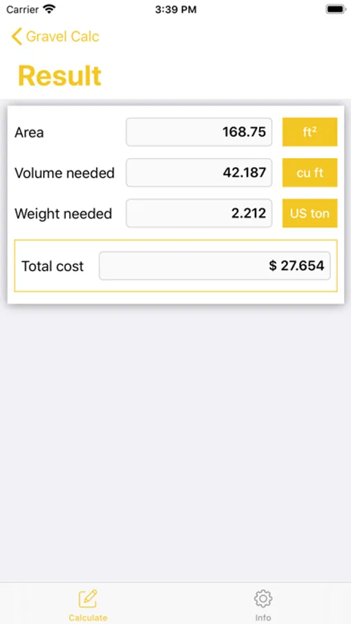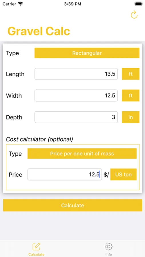 This app will help you estimate the amount of material required to finish all of your desired earthworks. All you need to do is enter the parameters to determine the area and volume needed, price by volume or weight. We will help you calculate the amount of gravel and the total amount needed to complete your own project.