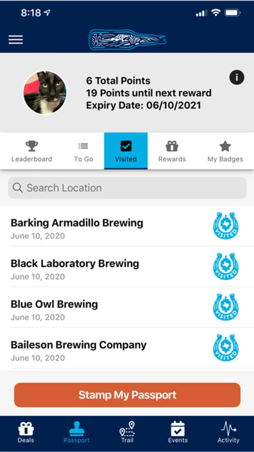 With Texas Brewery Passport™ you can find and visit downtown taprooms, warehouse district watering holes, and scenic destination breweries in your neighborhood--or, on your next road trip or weekend getaway across Texas. As you visit new breweries, add stamps to your digital passport, earn badges, and collect points to redeem for special prizes and free merch!