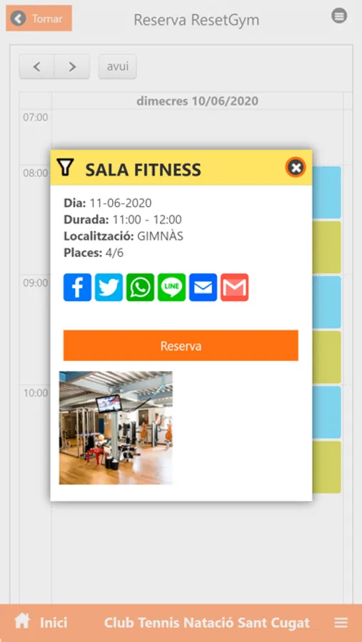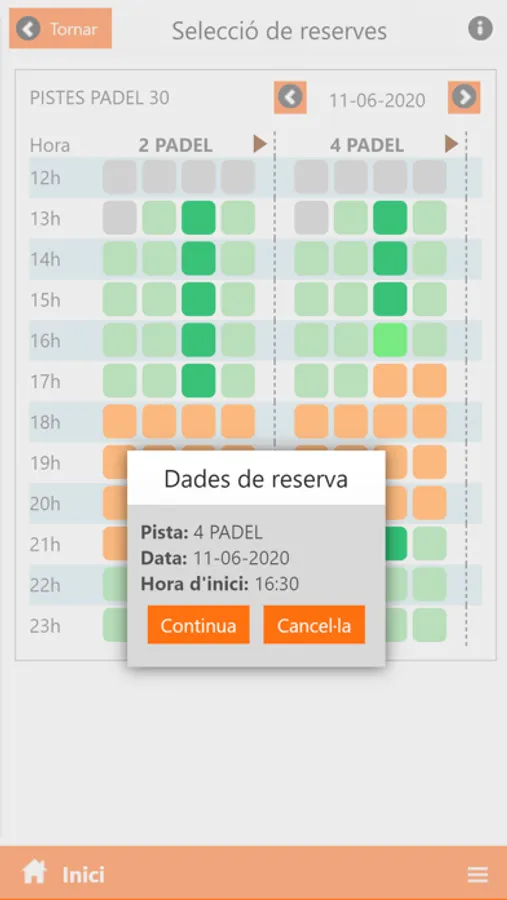 Pots reservar les pistes de tennis, de pàdel, etc.