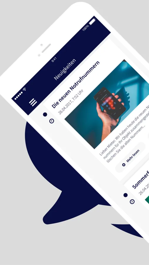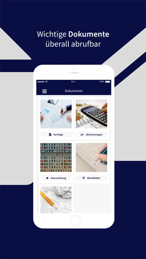 Als Kunde haben Sie mit unserer App die Möglichkeit, unser sog. Kundencenter online zu nutzen. Es Stehen Ihnen neben allgemeinen Dokumenten zum Download vor allem Ihre wichtigsten Verwaltungsdokumente (Verträge, Teilungserklärung, Abrechnungen, Protokolle...) zur Einsicht zur Verfügung.