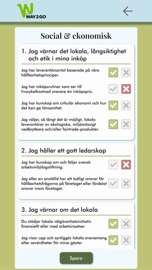 Dalarna ska vara en hållbar destination ur alla dimensioner – ekonomiskt, ekologiskt och socialt. För besöksnäringen är det en överlevnadsfråga. Ur marknadsperspektivet är det en nödvändighet – regioner, destinationer och företag som inte upplevs som ansvarstagande i ett hållbarhetsperspektiv väljs bort av konsumenterna. För vår egen skull handlar det om vår upplevelseproduktion inte tär på de resurser vi har i termer av miljö och kulturhistoria, att de är långsiktigt lönsamma och att besöksnäringen bidrar till en hållbar samhällsutveckling i hela Dalarna. I appen kan du göra en nulägesanalys på ditt företags hålbarhetsstatus och får tips på vad du kan göra för att stärka ditt företag inom området.