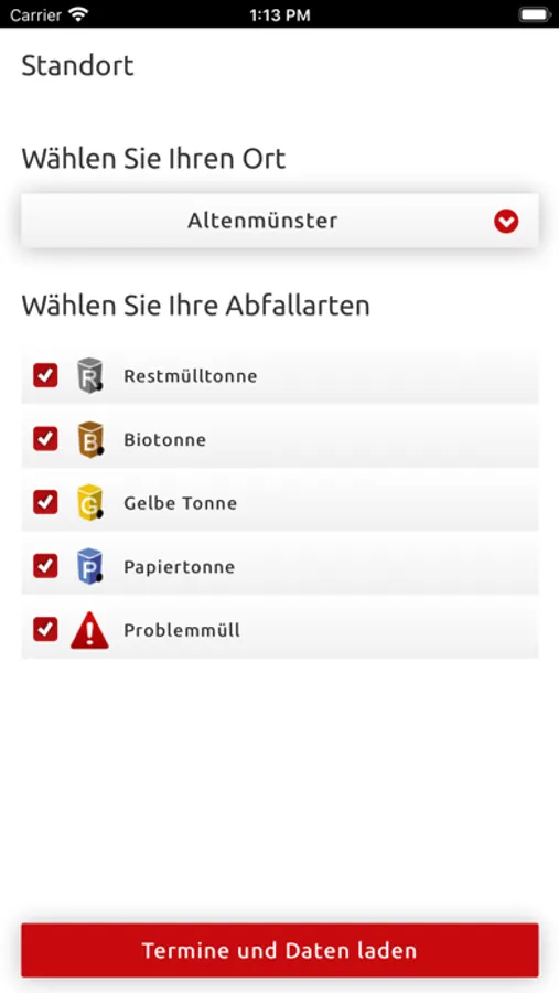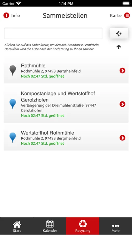 * Standortabfrage zum noch leichteren Finden der nächsten Sammelstelle.
