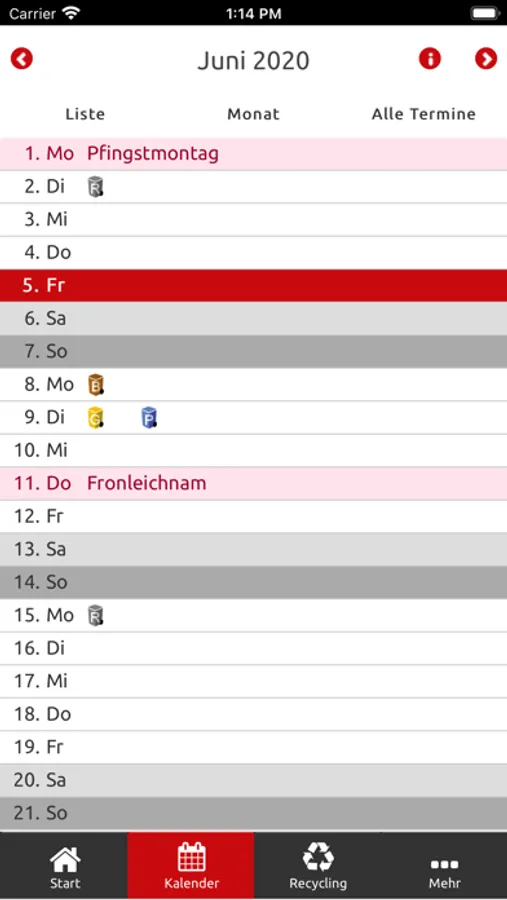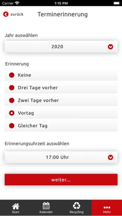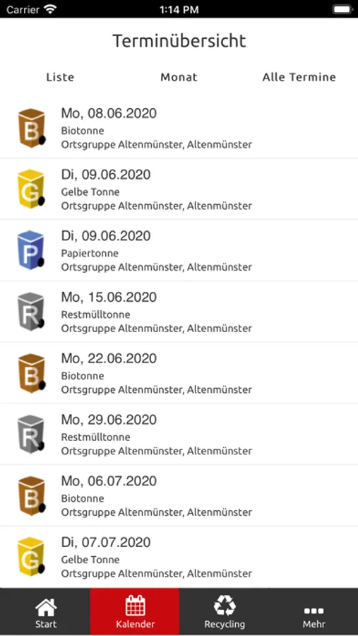 * Vergessen, die Tonne herauszustellen? Mit der Erinnerungsfunktion die Termine für die Leerung in den eigenen Kalender übertragen.