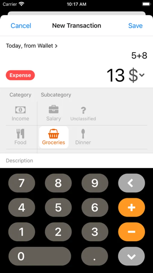 You can of course track your incomes and expenses with ease in the transactions section. Create multiple categories and also add subcategories if you want to have more control.