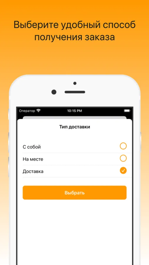 Укажите время, когда хотите прийти за своим заказом или выберите доставку с указанием времени и адреса доставки.